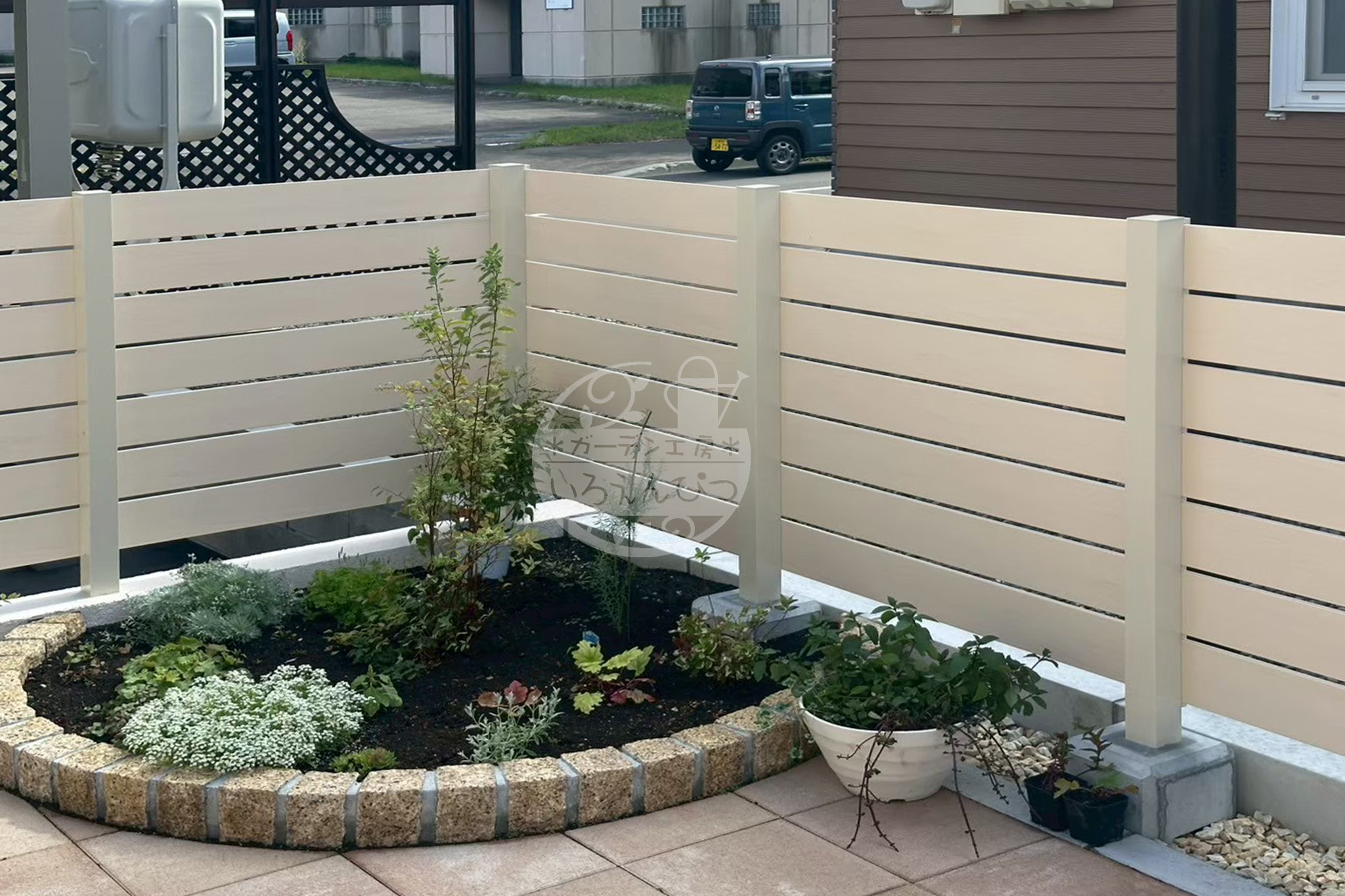 フェンスには、アーバンフェンスというアルミ柱に人工木の板を貼っていくという製品を使用しています。