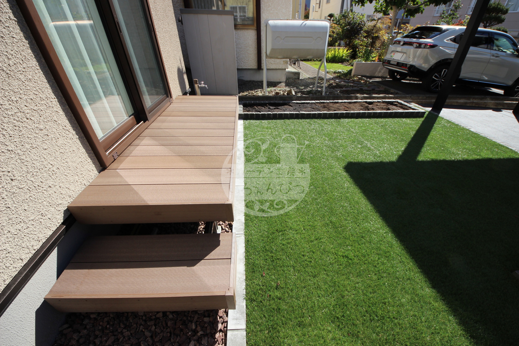 リビングからデッキへ、そして人工芝スペースにスムーズに移動ができ、お子様が遊ぶ範囲がグッと拡がります。